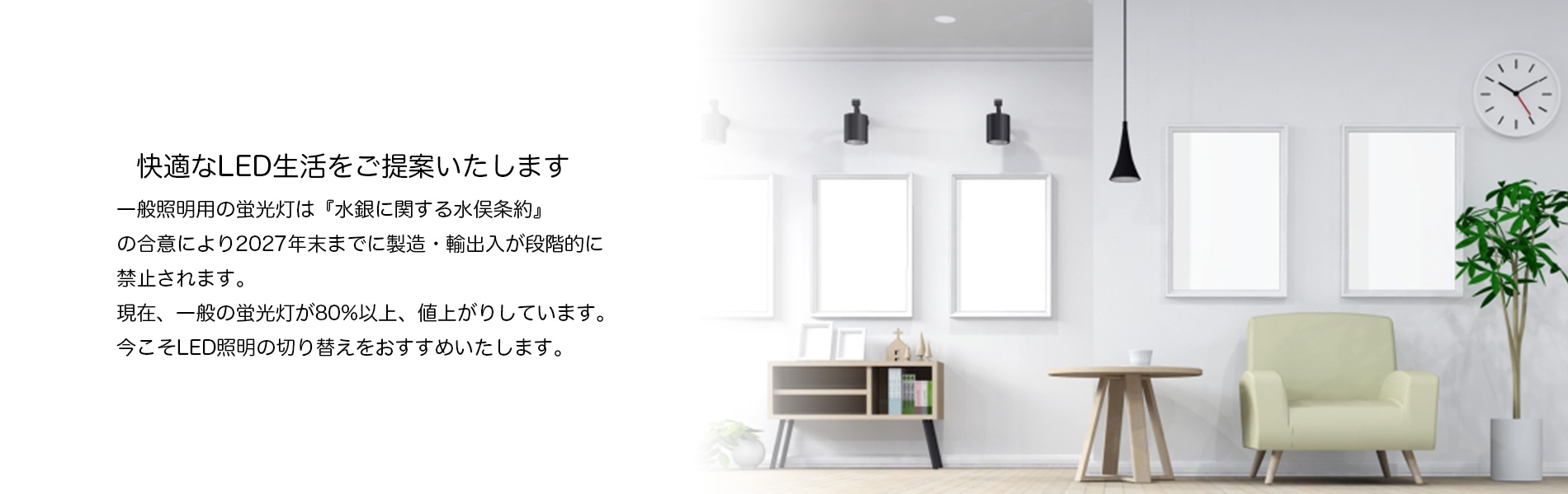 「水銀に関する水俣条約」により2027年末までにすべての蛍光管の製造と輸出入が禁止されます。現在、蛍光管が80%〜130%以上値上がりしております。